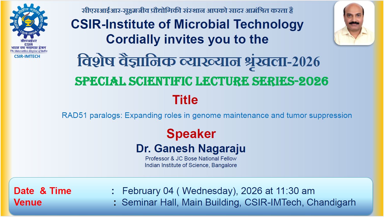 डॉ. गणेश नागराजू द्वारा 4 फरवरी 2026 को सुबह 11:30 बजे विशेष वैज्ञानिक व्याख्यान।